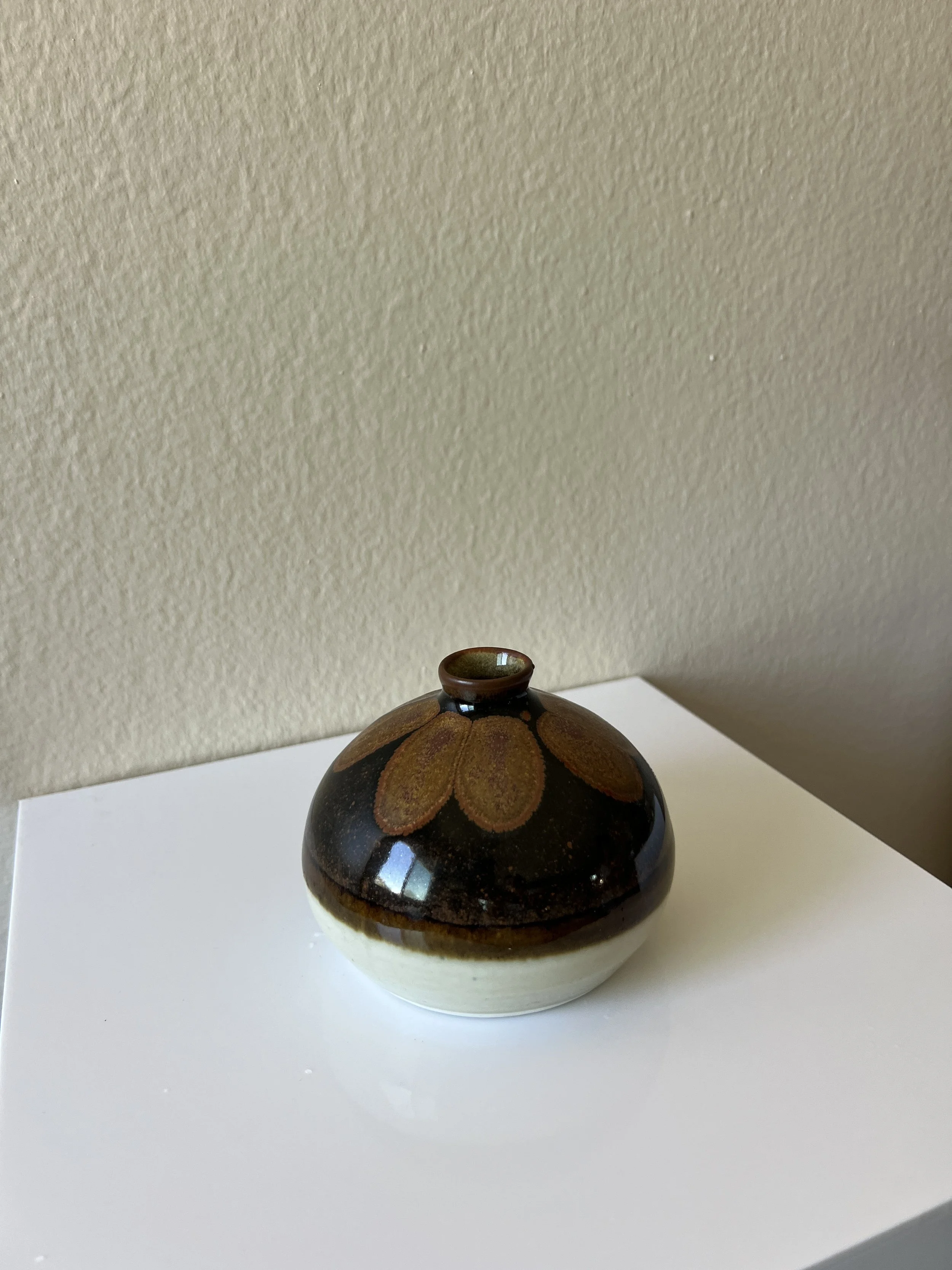 Tiger Blossom Shop Categories: All Tea Vessels Small Neck Level 1 Kits Arrangement Tools Journaling Service Appointment Digital Product Physical Product Vintage Brown Flower Vase $60.00